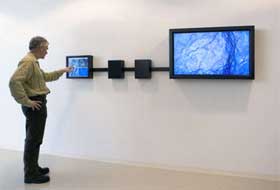 E-volver monitors have been installed at the Leiden University Medical Center (NL). The work echoes the research that takes place in the LUMC. Whereas the scientists are mainly focused on biochemistry, genetics and the evolution of biological life, the installation shows how autonomous processes such as growth and evolution, which can maybe be understood theoretically but which are never directly perceptible in daily life, can be perceptible on a sensory level.